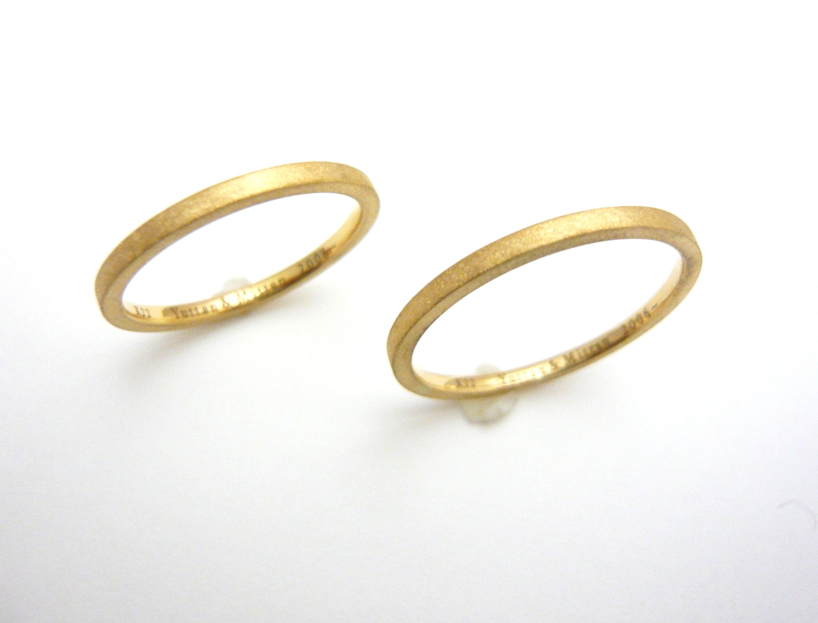 珍しいK22のマリッジリングです。指輪の幅や表面のテクスチャーなど細部に渡りご指定頂き、こだわりのマリッジリングになりました。