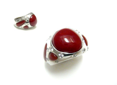 当店オリジナルのデザインをお選び頂き、デザインに合うよう血赤サンゴをカットして作りました。
